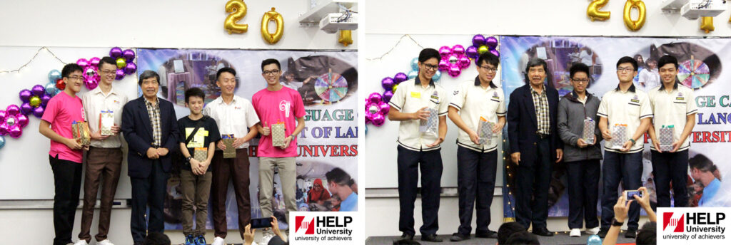 The grand prize winner, Muar Chung Hwa High School with Mr Lai Sin Siang (Director, Chinese Education & Culture at HELP University), Dr Khong Kim Hoong, Dr Hannah Pillay, and Dr Lim Chooi Peng (Programme Advisor, Department of Languages).